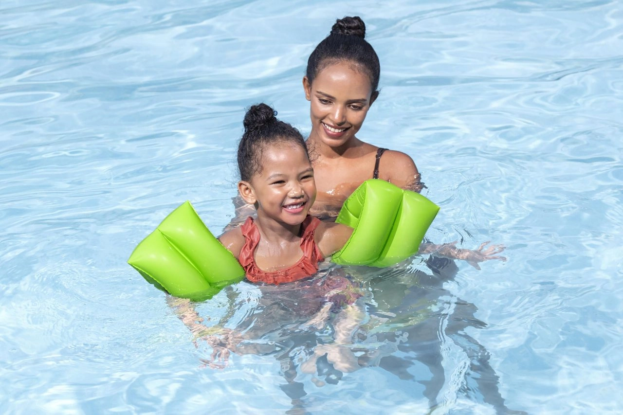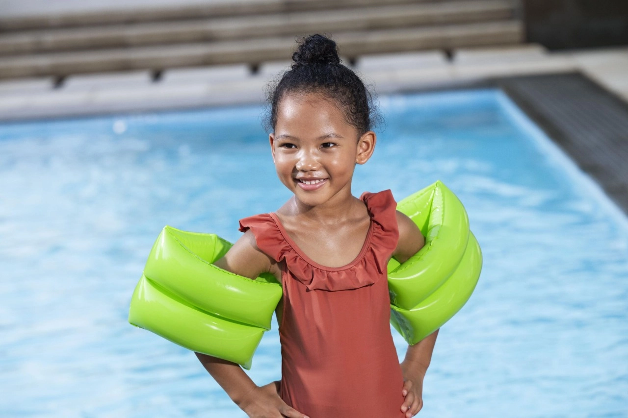 Braccioli gonfiabili sicuri e confortevoli per bambini di BESTWAY aiutano a costruire fiducia in acqua. Grazie a due camere d’aria, valvole robuste e al vivace colore verde offrono un ottimo galleggiamento, visibilità e facile utilizzo – ideali per imparare a nuotare in piscina e al mare.