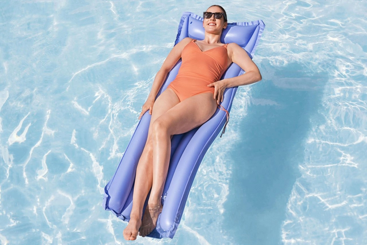 Il poggiatesta rialzato assicura un sostegno naturale al collo e un piacevole relax durante il nuoto e la tintarella.