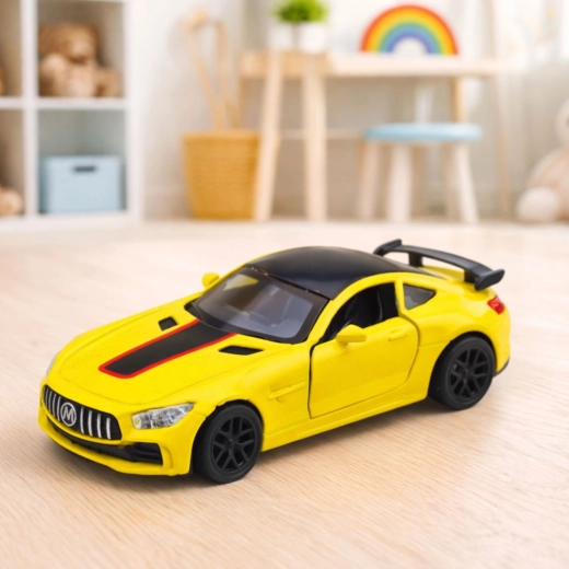 Questo modello sportivo in metallo 1:32, rifinito nei dettagli, combina un resistente telaio metallico con componenti in plastica di precisione. Le linee aggressive della carrozzeria, lo spoiler posteriore e i contrasti cromatici enfatizzano il carattere racing del modello, perfetto sia sullo scaffale sia in azione.