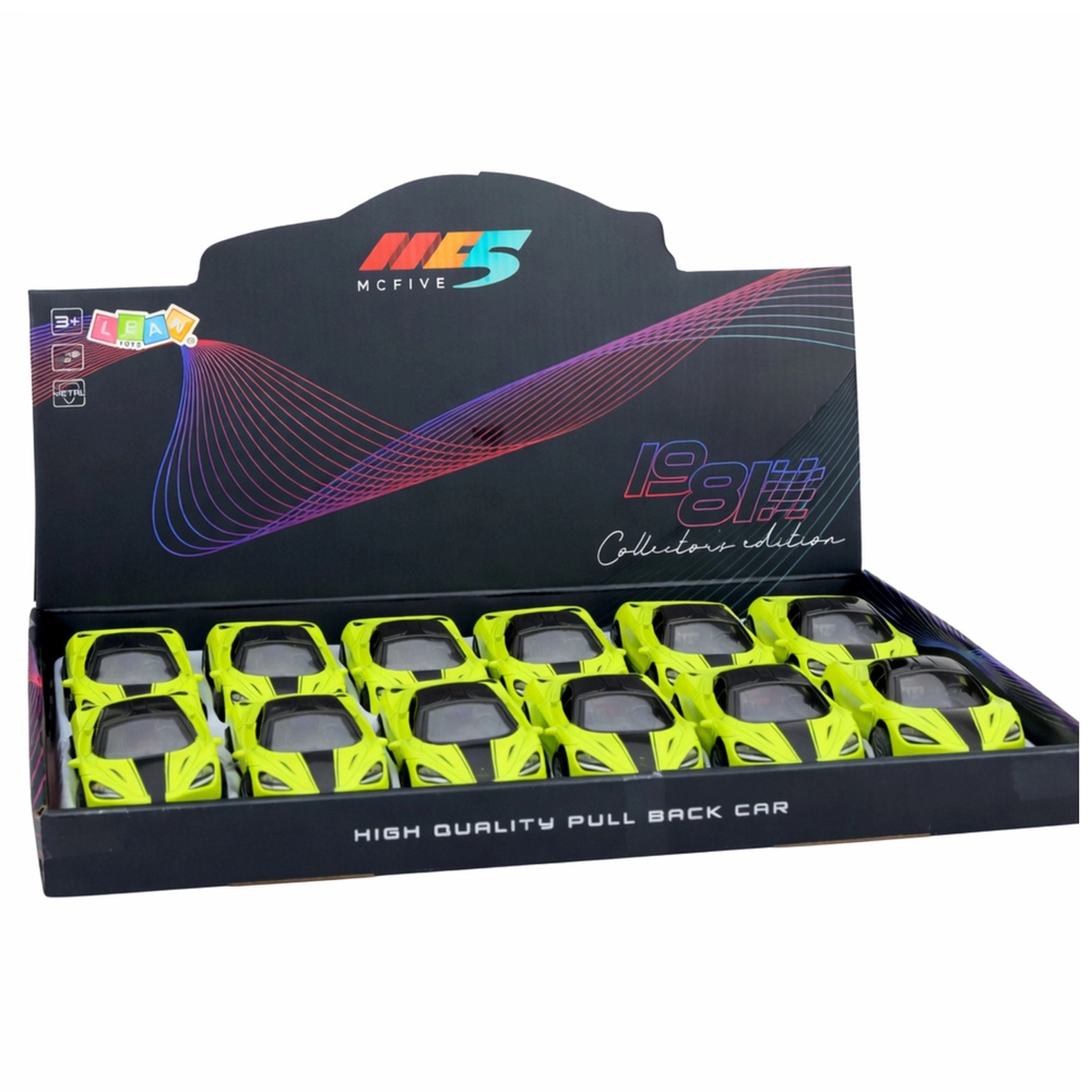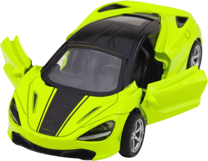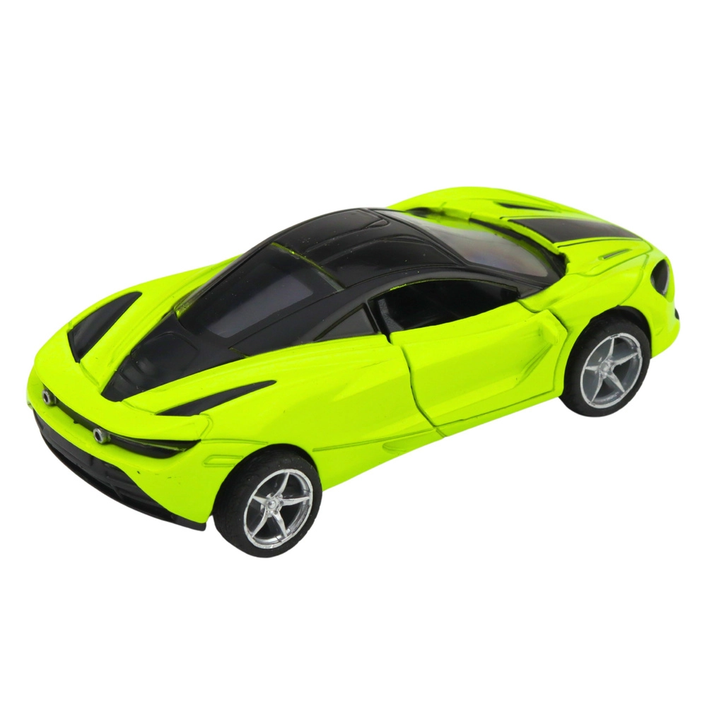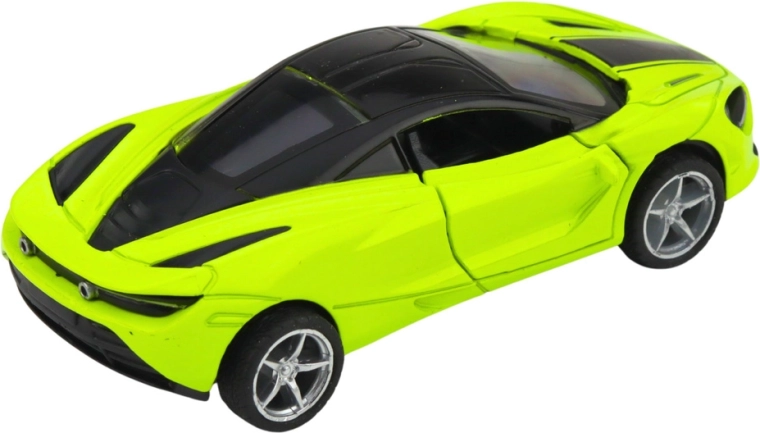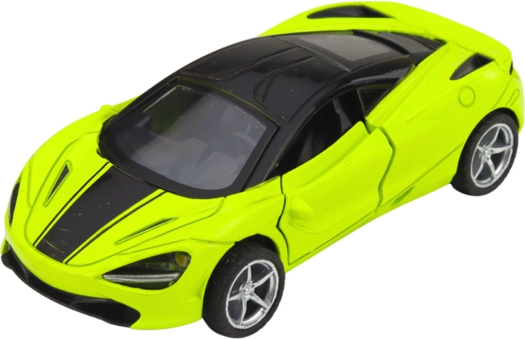 Elegante auto sportiva in metallo in scala 1:32 che entusiasmerà piccoli e grandi appassionati. Dispone di carrozzeria in metallo, meccanismo a retrocarica (pull-back), porte apribili e effetti luminosi e sonori. Le dimensioni compatte e il vivace colore verde la rendono perfetta per il gioco quotidiano e come modello da collezione.