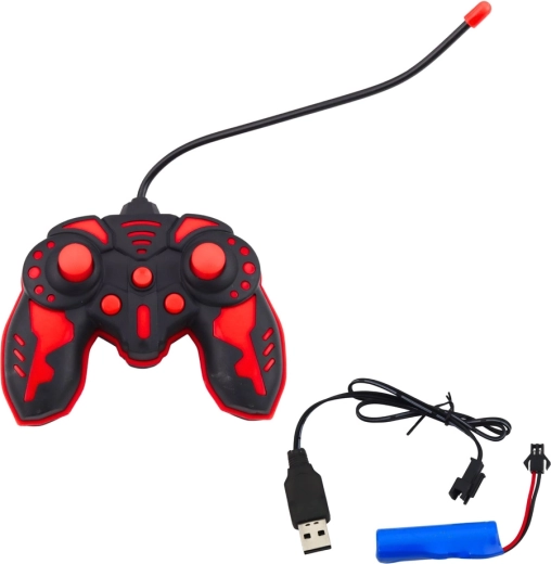 L'auto è alimentata da una batteria Li‑ion 3,7 V, il telecomando utilizza 2× AA. Forma ergonomica e risposta rapida per una guida confortevole.