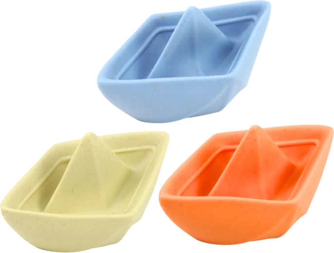 Queste barchette da bagno pastello sono realizzate in gomma morbida e flessibile, quindi si afferrano facilmente, si possono schiacciare e trasportare. Grazie al design leggero scivolano dolcemente sulla superficie dell’acqua e invogliano i bambini a esplorare il gioco con l’acqua – nella vasca, in piscina e in vacanza.