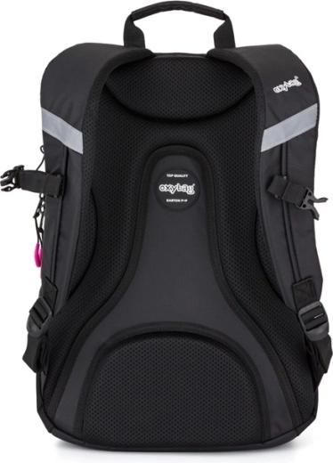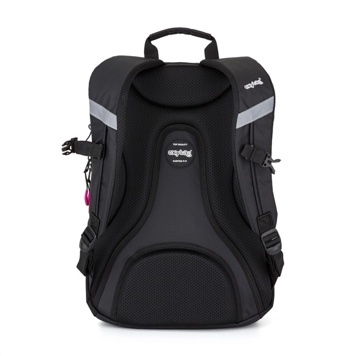 Elegante zaino scolastico e per il tempo libero OXYBAG in set con astuccio offre schienale ergonomico, spallacci imbottiti e regolabili con cinghia pettorale e spazio sufficiente per la scuola e l’uso quotidiano. Due scomparti principali, tasca rinforzata per laptop, tasca laterale per bottiglia e numerosi elementi riflettenti garantiscono comfort, ordine e sicurezza. Capacità 24 l, peso 870 g, portata 8 kg.