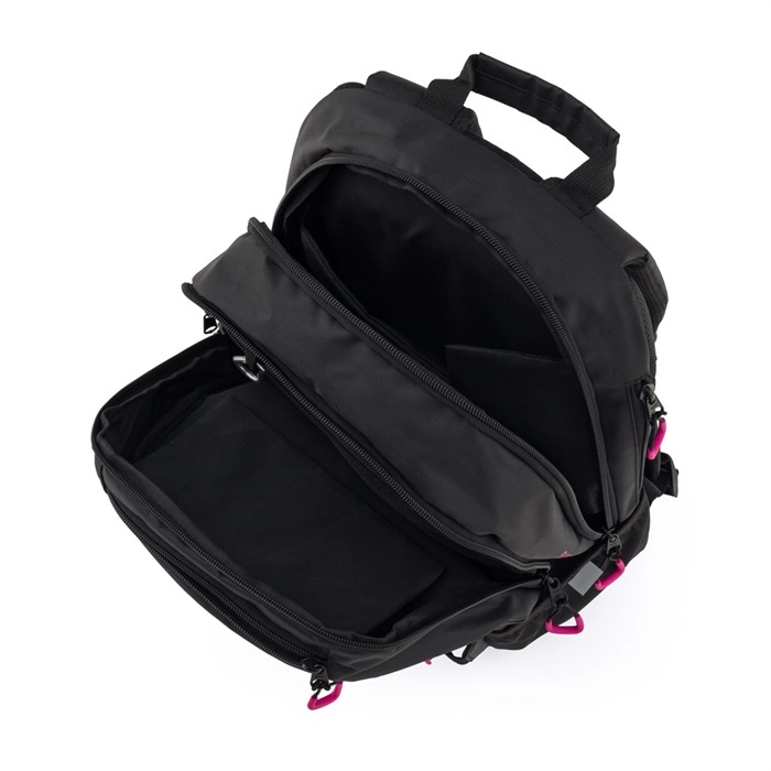 Il set dello zaino per studenti con astuccio OXYBAG Sport nell’amato design ombré combina un aspetto moderno con una suddivisione pratica. Lo zaino ha due ampi scomparti e una tasca frontale più piccola, cerniere robuste con tiretti e organizer per un ordine quotidiano. Per il trasporto sicuro dei dispositivi, all’interno c’è una tasca rinforzata per laptop, non manca il moschettone per chiavi, una piccola tasca per gli oggetti minuti e una tasca nascosta sul retro.