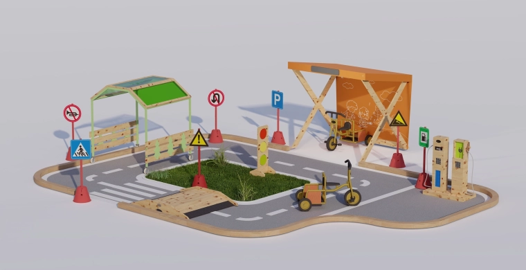La resistente struttura in legno è adatta anche all’esterno, mentre le superfici lisce e la base stabile garantiscono un uso sicuro. Il gioco sviluppa naturalmente creatività, capacità di coordinazione, abilità manuali e consapevolezza ecologica sulla mobilità moderna.