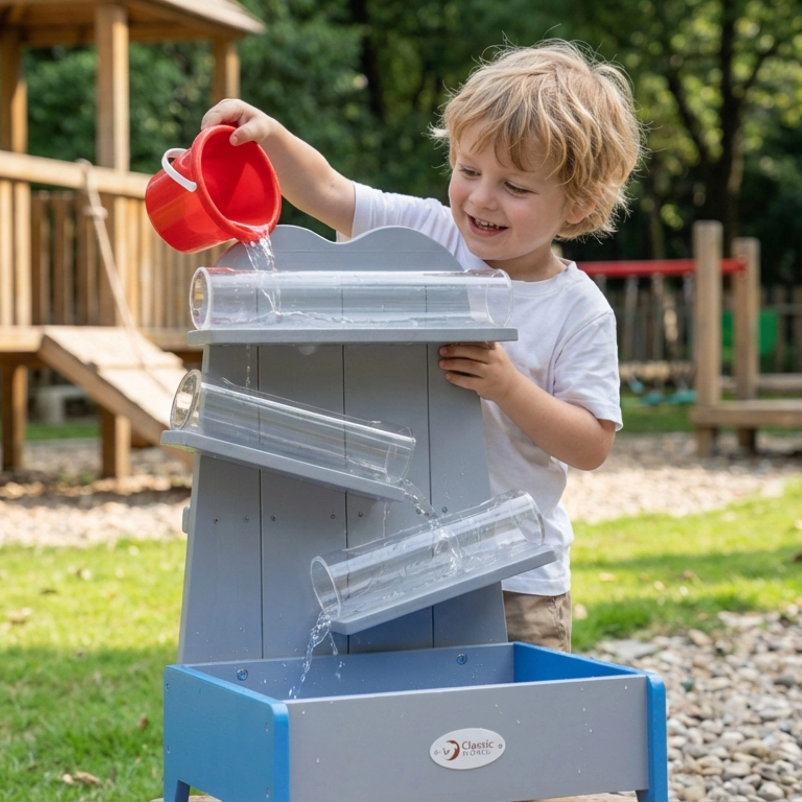 - Gioco sensoriale e STEM: il flusso d’acqua visibile insegna le leggi fisiche in modo ludico.