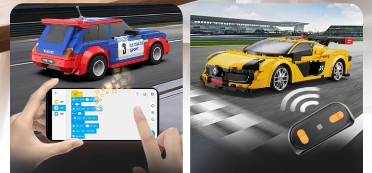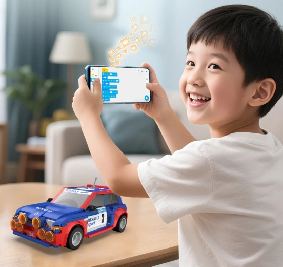 Il modello RC supporta il Dual Mode – puoi guidarlo con il telecomando a 2,4 GHz oppure tramite app mobile con diverse modalità (telecomando virtuale, programmazione Scratch, controllo giroscopico, disegno del percorso). L’auto raggiunge velocità fino a 3,8 km/h e mantiene una connessione stabile a una distanza di oltre 20 metri.
