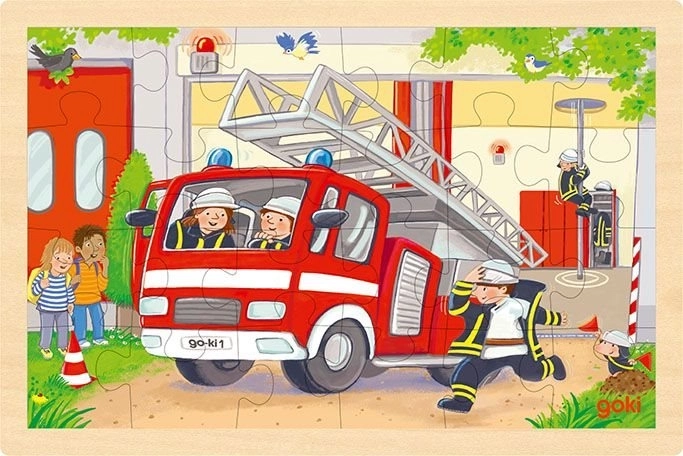 Scoprite puzzle in legno di qualità che uniscono divertimento e apprendimento in uno. Grazie ai pezzi bifacciali i bambini compongono subito due immagini: pompieri ed elicottero. La robusta tavola in legno con bordo fresato facilita la composizione, mentre il gioco sviluppa la motricità fine, la concentrazione e la fantasia. Il marchio GOKI è garanzia di giocattoli sicuri, durevoli e prodotti in modo responsabile.