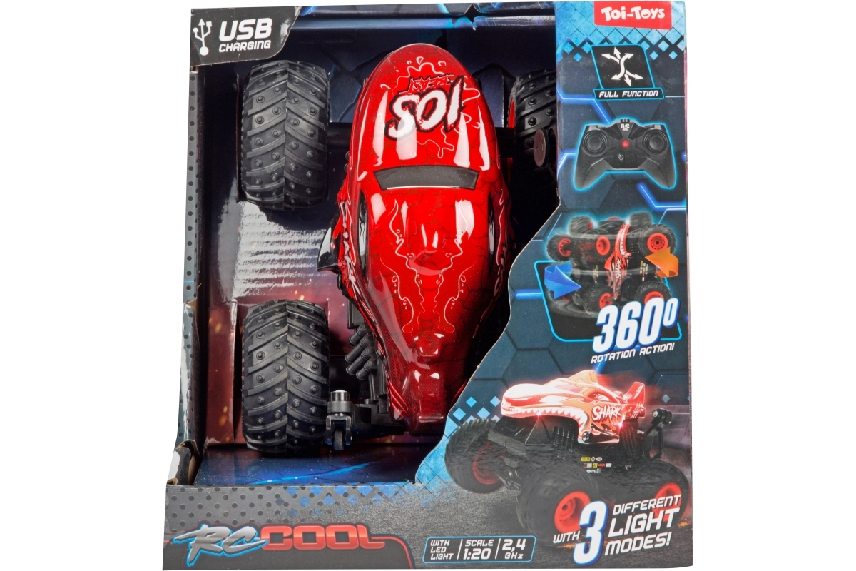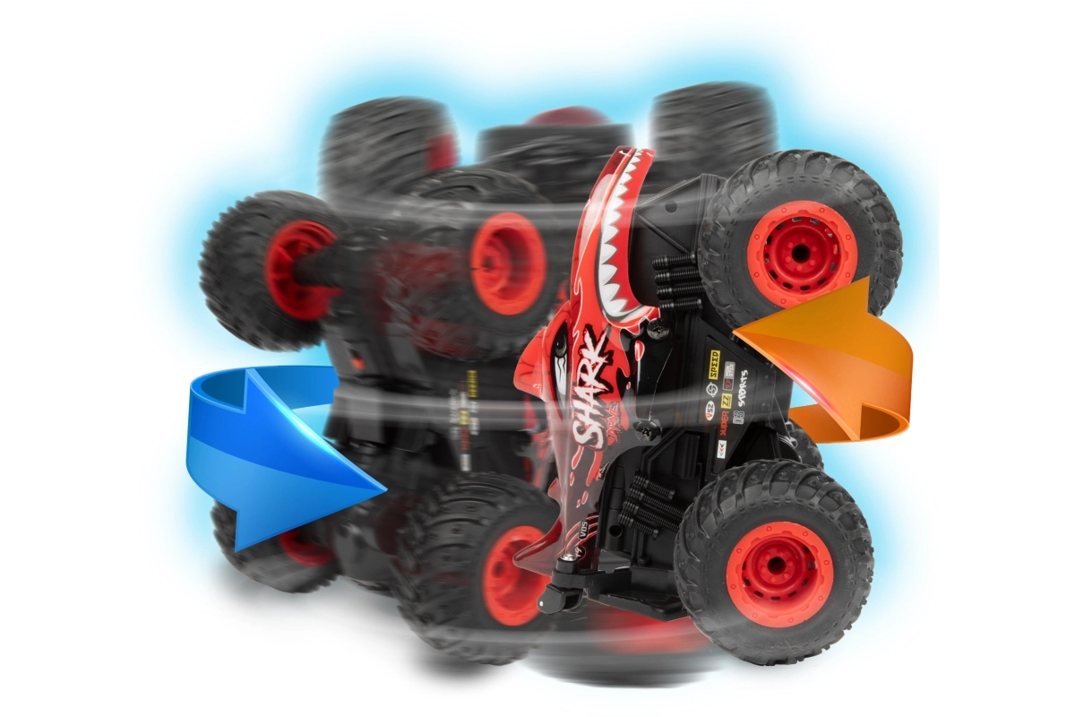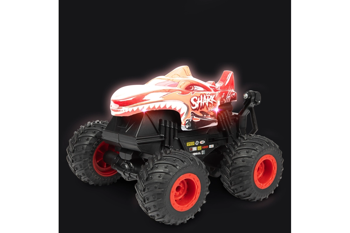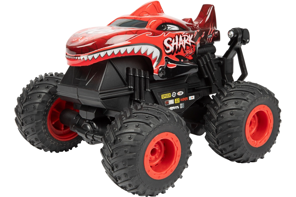 Il monster truck è realizzato in plastica resistente, ha grandi ruote profilate e sospensioni visibili per una migliore stabilità su superfici irregolari. Due look accattivanti (dinosauro o squalo) vengono forniti in base alla disponibilità di magazzino: entrambi si distinguono per il design deciso e la costruzione robusta.