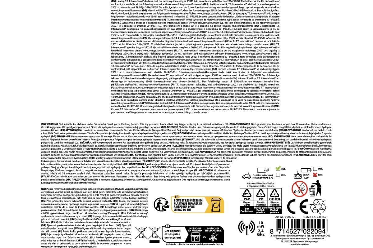- Set completo: auto con batteria ricaricabile integrata + cavo USB, basta inserire le batterie AA nel radiocomando