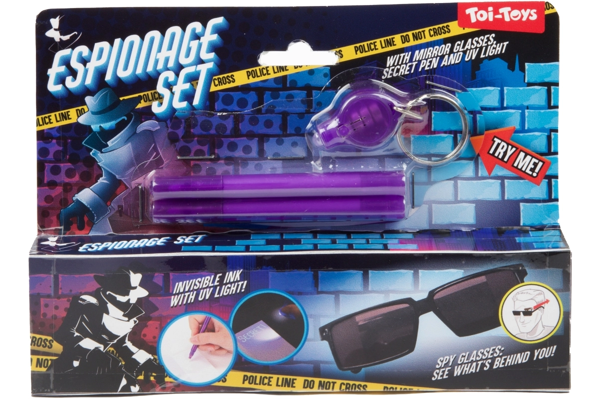 Con questo set da spia, i bambini diventeranno maestri di missioni segrete. I messaggi scritti con l’inchiostro speciale sono visibili solo sotto la luce UV, rendendo ogni avventura ancora più emozionante. Gli occhiali con visione posteriore permettono ai piccoli agenti di osservare discretamente ciò che accade alle loro spalle.
