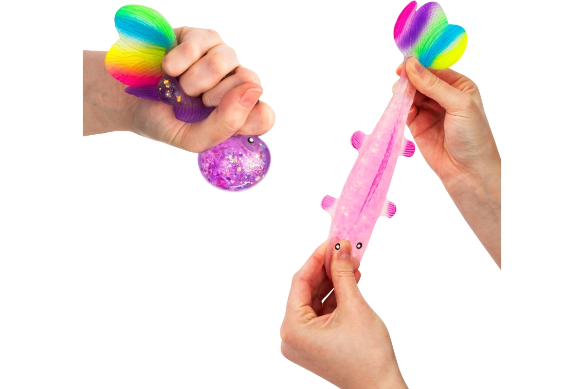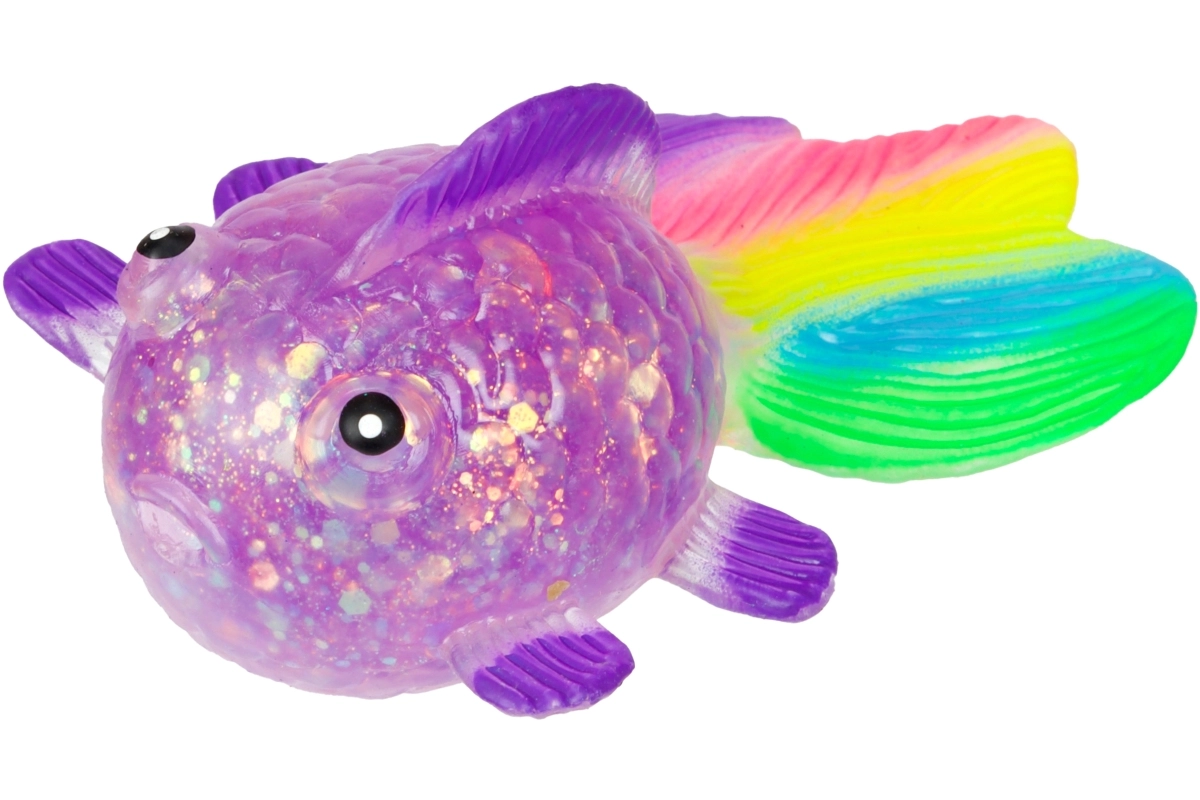 Il corpo traslucido con glitter e la pinna caudale colorata affascinano bambini e adulti e invitano a continuare a schiacciare.