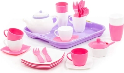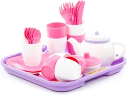 Set da tè rosa e bianco con vassoio - 35 pezzi