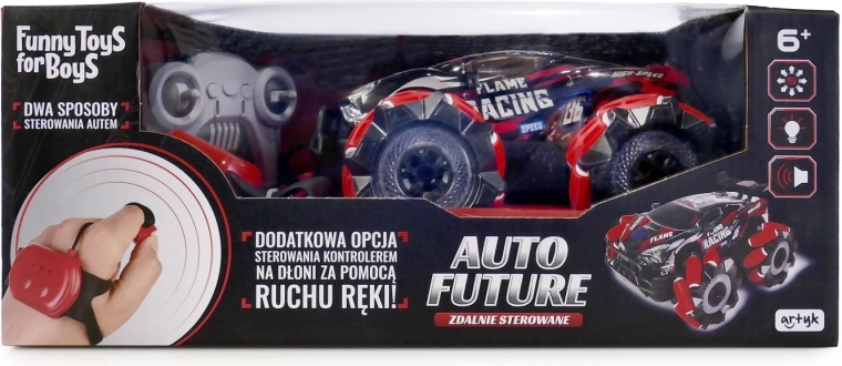 Vivi un nuovo livello di divertimento con l'auto RC Future controllata a mano. Offre 2 modalità di controllo – con il classico telecomando oppure con orologio/gesti, ha pieno range di guida, può muoversi anche lateralmente, vanta ruote futuristiche, carrozzeria retroilluminata e musica integrata.