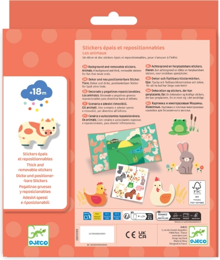Scopri la magia dell’incolla-e-stacca con il set creativo del brand DJECO. Gli adesivi riposizionabili a tema animali della fattoria permettono ai bambini di attaccare, staccare e ricomporre facilmente le proprie storie di fattoria, senza disordine e senza residui di colla.
