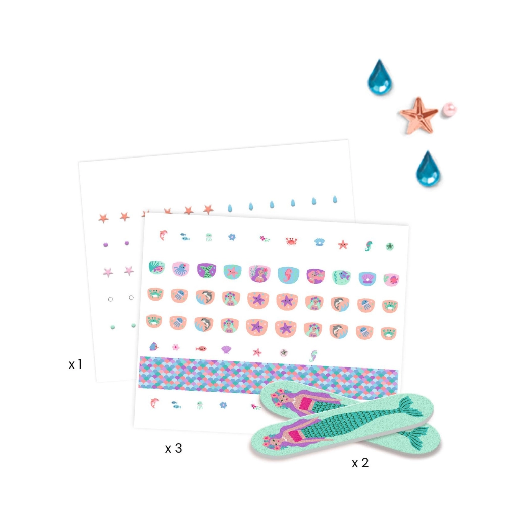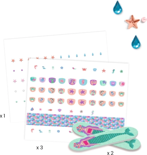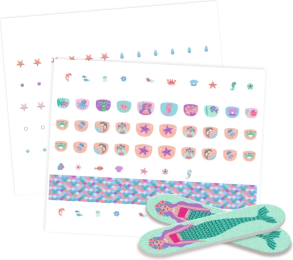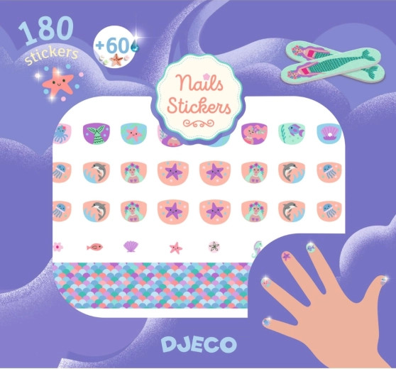 Incanta le piccole fashioniste con una manicure rapida e divertente senza smalto. Adesivi per unghie a tema mondo marino di DJECO facili da applicare, delicati sulla pelle dei bambini e capaci di trasformare all’istante le unghie in adorabili mini immagini.