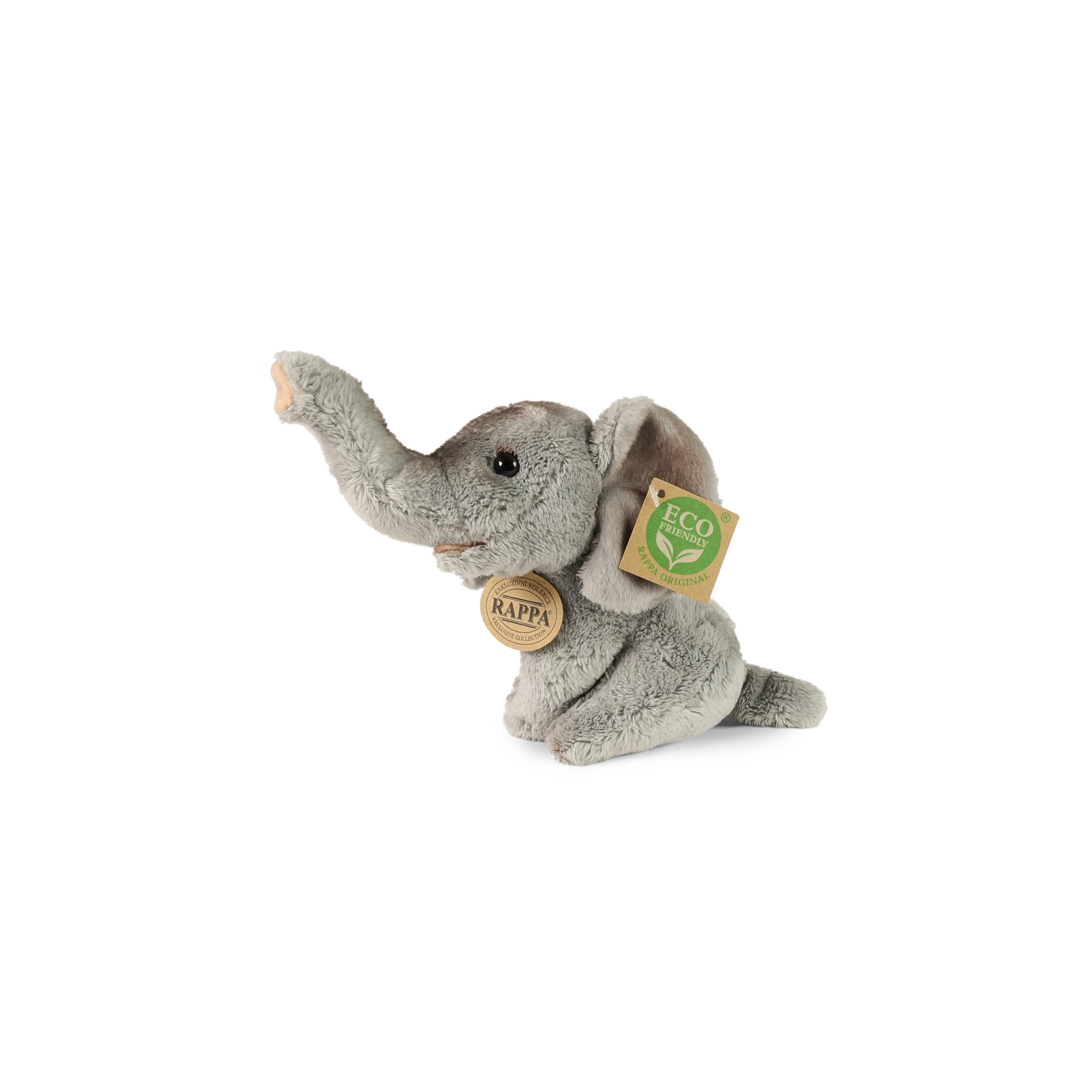 Adorabile elefante di peluche alto 15 cm della collezione esclusiva RAPPA che farà felici bambini e collezionisti. Realizzato con materiali di alta qualità, lavorazione artigianale per un aspetto realistico e imbottitura eco in bottiglie PET riciclate, adatta anche ai neonati.