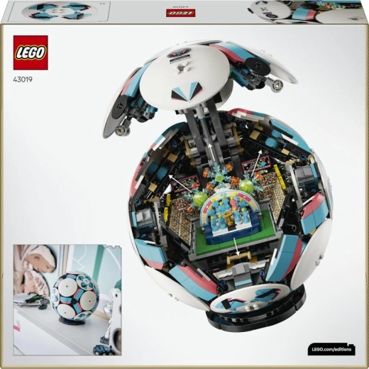 Il set LEGO Editions Pallone da calcio (43019) conquisterà tutti gli appassionati di calcio e i collezionisti di modelli di design. Grazie agli elementi LEGO Technic, il pallone ottiene un’autentica forma sferica ispirata al pallone ufficiale misura 5 e presenta sei eleganti dischi decorativi sulla superficie. All’interno si cela una sorpresa: un mini stadio con una dinamica scena di festeggiamenti.