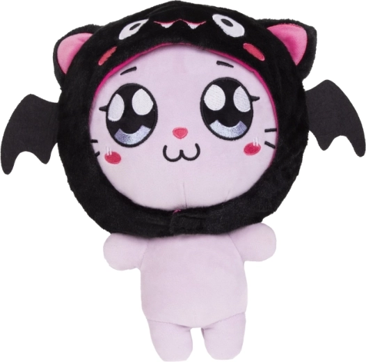 Dolcissima gattina di peluche con originale cappuccio da pipistrello, perfetta per bambini dai 10 mesi. Realizzata in peluche extra morbido, con dettagli ricamati sicuri e cappuccio/felpa rimovibile che favorisce lo sviluppo della motricità fine. Ideale come coccola e come decorazione per la cameretta.