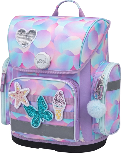 La cartella BAAGL Ergo Candy è progettata per bambini dalla 1ª classe della scuola primaria. Combina peso ridotto fino a 1.200 g con schienale dal design ergonomico e spallacci completamente regolabili per un trasporto salutare senza carichi inutili. Il fondo rigido e il materiale impermeabile proteggono il corredo scolastico con ogni condizione meteo.