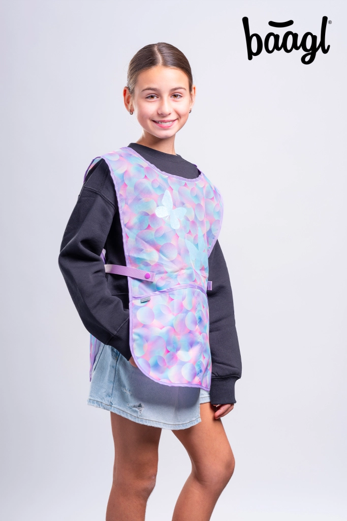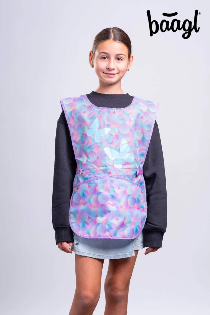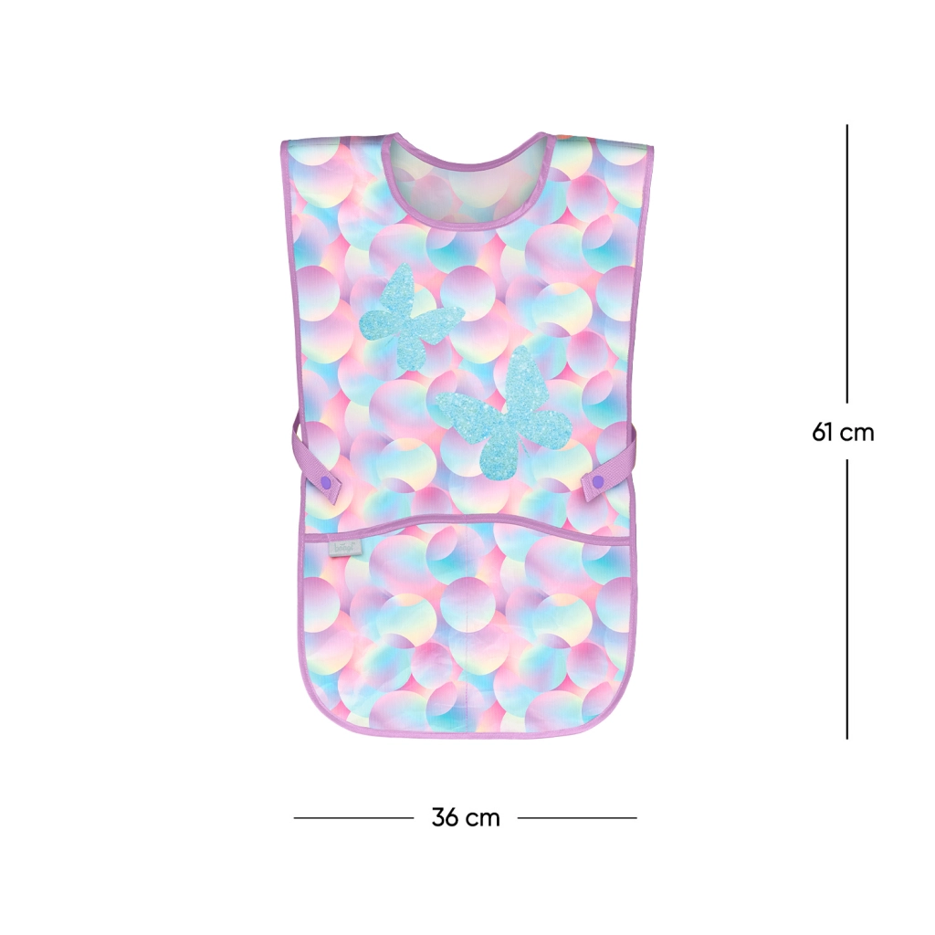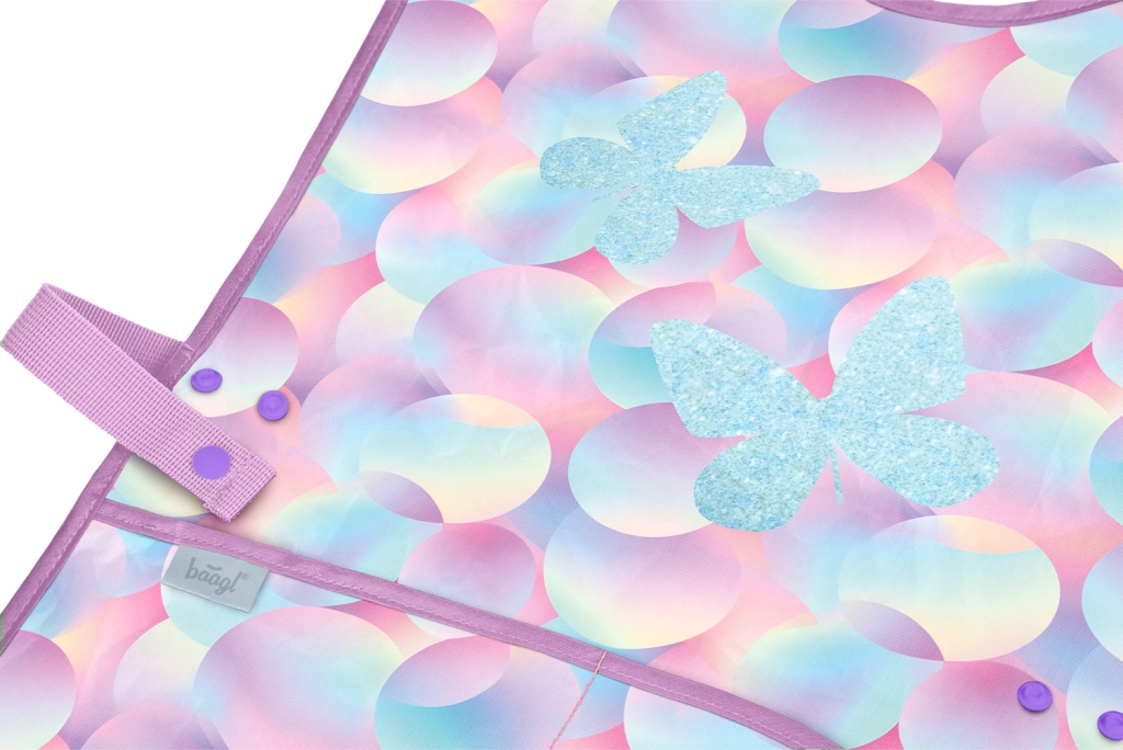 Concedi ai bambini libertà di creare senza paura di macchie. Il grembiule per bambini BAAGL Candy, con delicata fantasia pastello e farfalle, è ideale per educazione artistica, lavori manuali e attività creative a casa. La superficie liscia e resistente si pulisce con facilità e si asciuga in fretta, pronta per il prossimo utilizzo in pochi istanti.