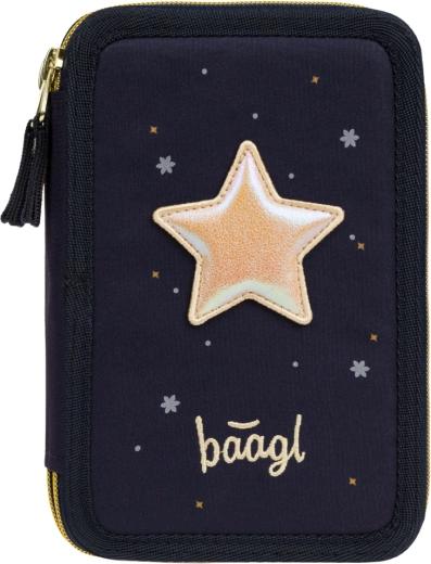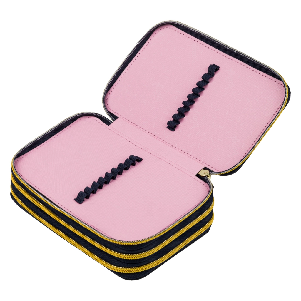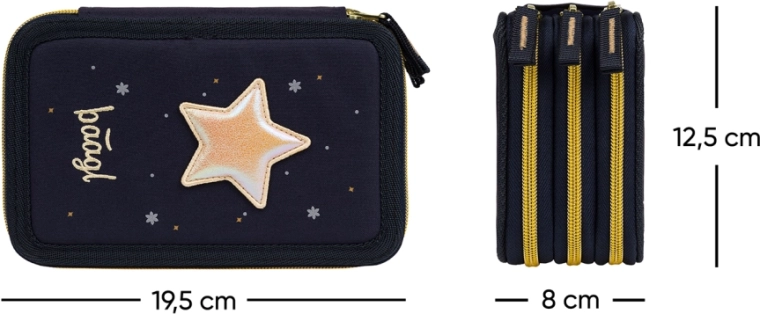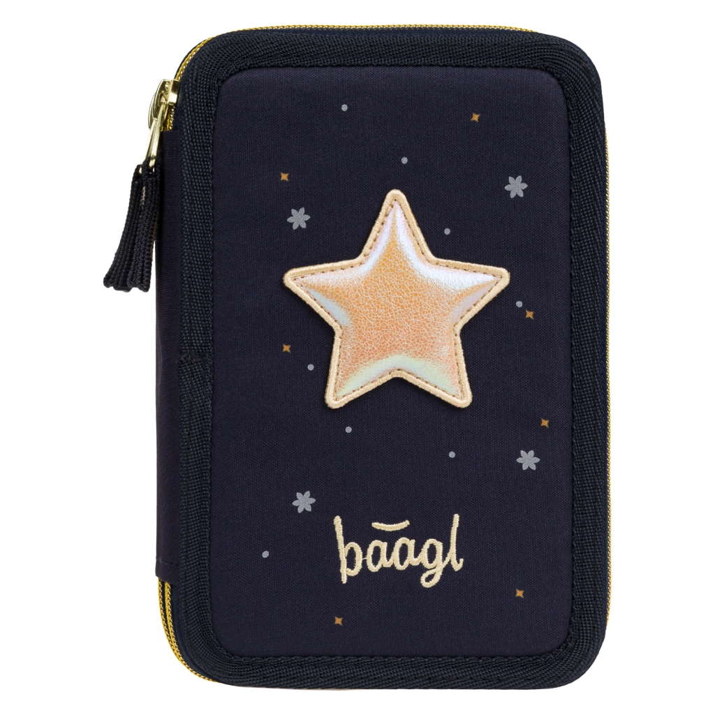 Pratico astuccio BAAGL Unicorn Gold a tre scomparti, in blu scuro con dettagli di effetto, offre un’organizzazione studiata del materiale scolastico. Tre vani separati con cerniera garantiscono accesso rapido e ordine, mentre il dorso rinforzato facilita la chiusura anche a pieno carico.