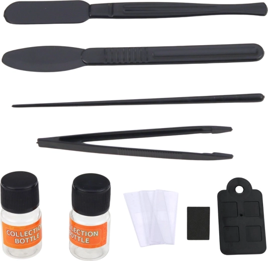 È incluso un ampio set di accessori con cui i bambini possono gestire in autonomia la preparazione dei campioni – dal lavoro con pinzetta e spatole al dosaggio con la pipetta e alla conservazione dei campioni nelle boccette. Un regalo ideale per piccoli esploratori dagli 8 anni in su, che unisce divertimento e apprendimento.