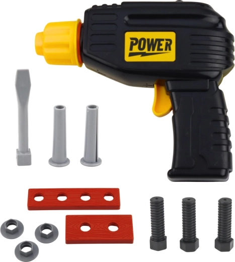 Il trapano per bambini alimentato da 2× AA (non incluse) imita l’avvitamento e motiva i più piccoli al gioco creativo e all’allenamento della motricità fine.