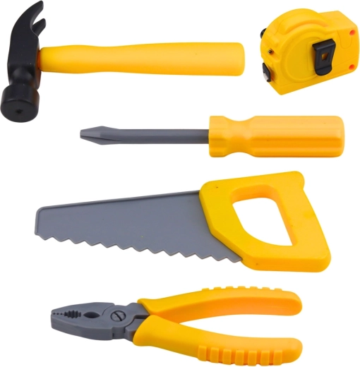 Martello, seghetto, cacciavite, pinze, metro, viti e piastrine: tutto per costruire e smontare in modo sicuro e creativo.