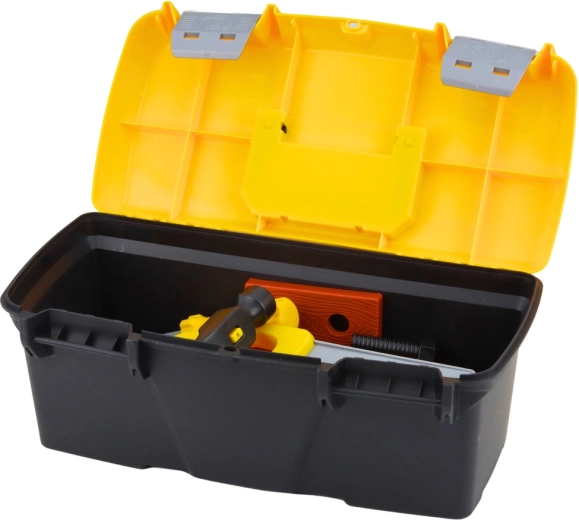 La solida cassetta con coperchio e chiusure mantiene gli attrezzi ben organizzati, insegna l’ordine ai bambini e facilita il trasporto.