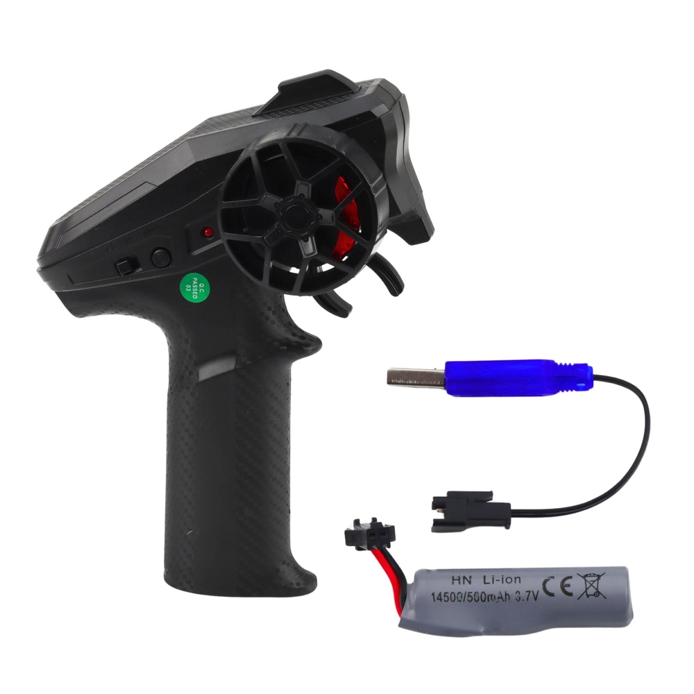 Radiocomando a pistola con sterzo preciso, affidabile frequenza 2.4 GHz e batteria ricaricabile Li‑ion 3,7 V per una guida comoda senza cavi.