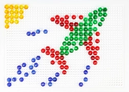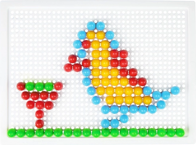 Chiodini dal diametro di 10 mm in colori brillanti che aderiscono perfettamente alla solida base in plastica 21 × 16 cm per una creazione confortevole.