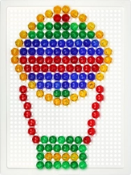 Inserire i chiodini nella griglia allena la presa, la coordinazione occhio–mano e la pazienza. Un’attività ideale per i bambini in età prescolare.
