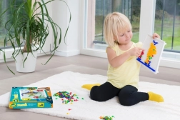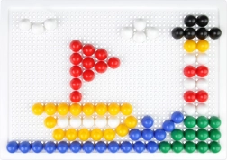 Include una griglia in plastica 21 × 16 cm e 100 chiodini dal diametro di 10 mm in colori vivaci. Il set è confezionato in scatola di cartone ed è adatto ai bambini dai 3 anni. Le schede modello non sono incluse – lo spazio per la fantasia è quindi illimitato.