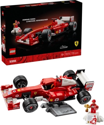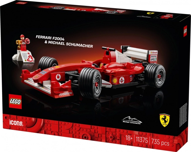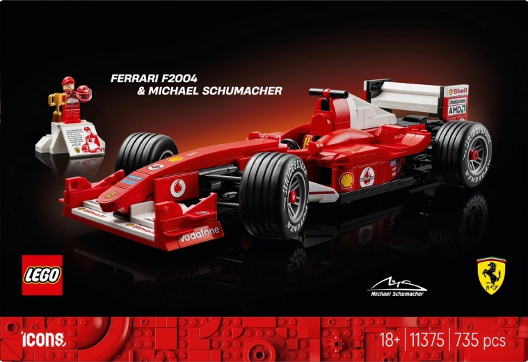 Celebra l’età d’oro della Formula 1 con il LEGO Icons Ferrari F2004 e il pilota Michael Schumacher. Questa replica dettagliata dell’iconica monoposto offre sterzo funzionante, cockpit realistico, motore V10 e statistiche stampate sulla base espositiva. Inclusa la minifigure di Michael Schumacher con casco, trofeo e podio con citazione – un regalo ideale per i fan della F1 e i collezionisti.