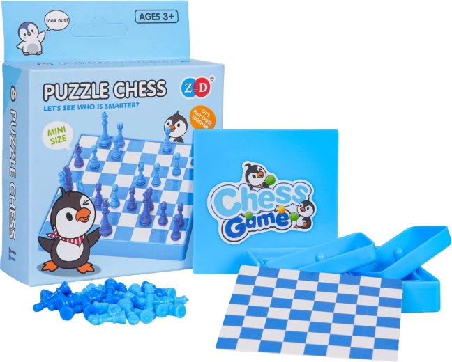 Questa variante giocosa “pinguino” del classico, in tonalità di blu, invita i bambini al primo incontro con gli scacchi e allo stesso tempo piacerà anche agli adulti come versione tascabile e veloce per i viaggi.