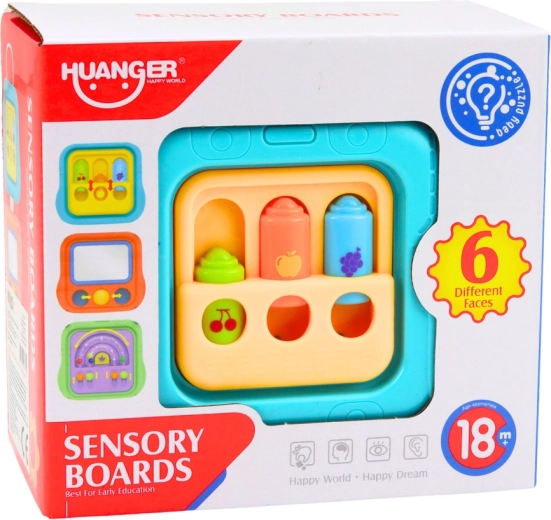 Cubo sensoriale educativo – 6 attività, pannelli manipolativi