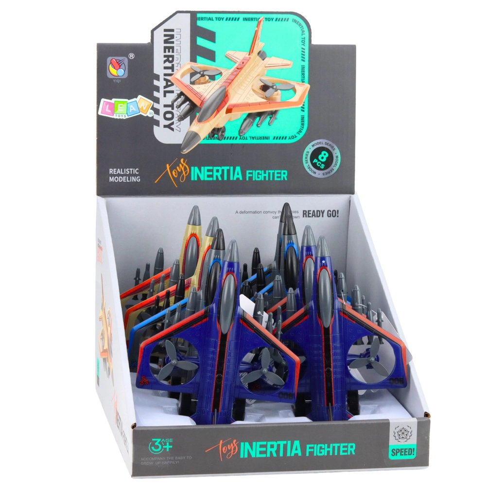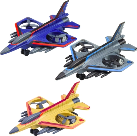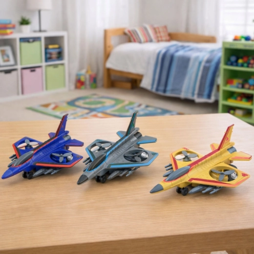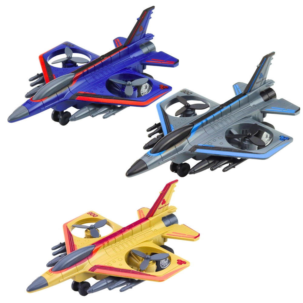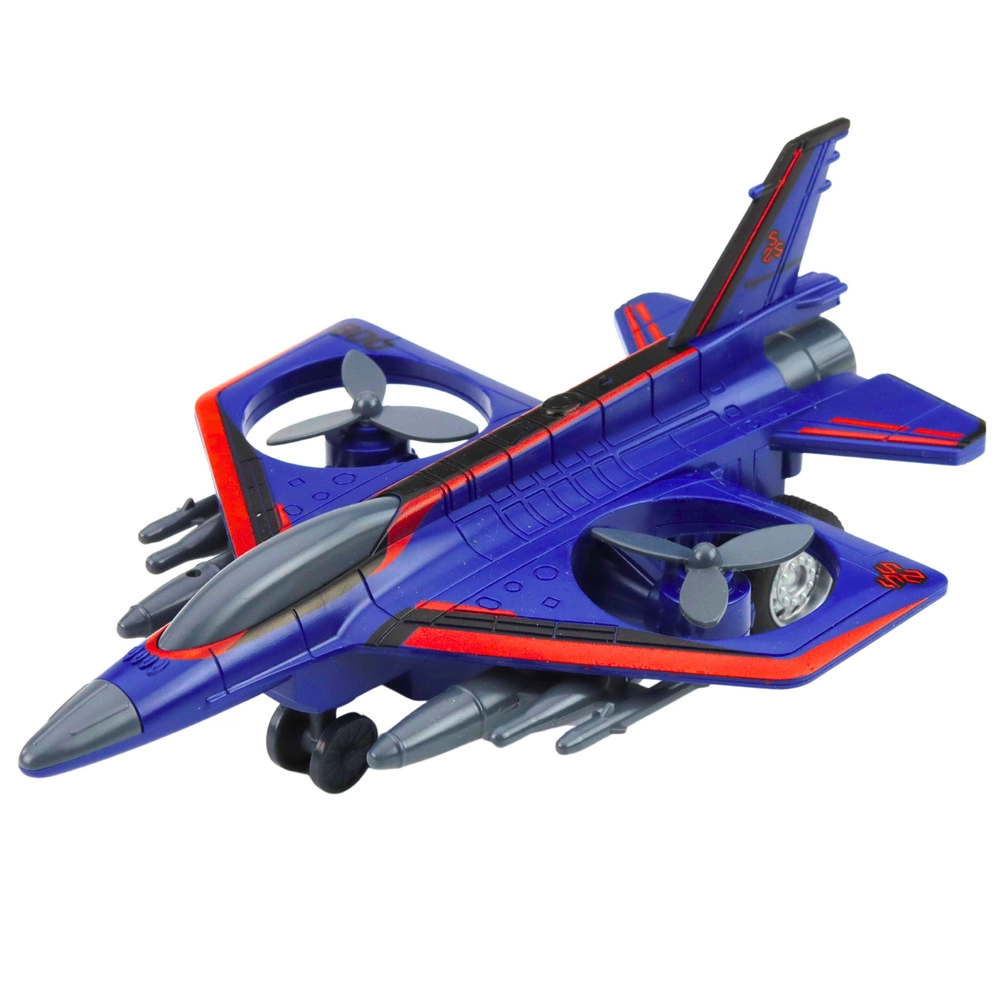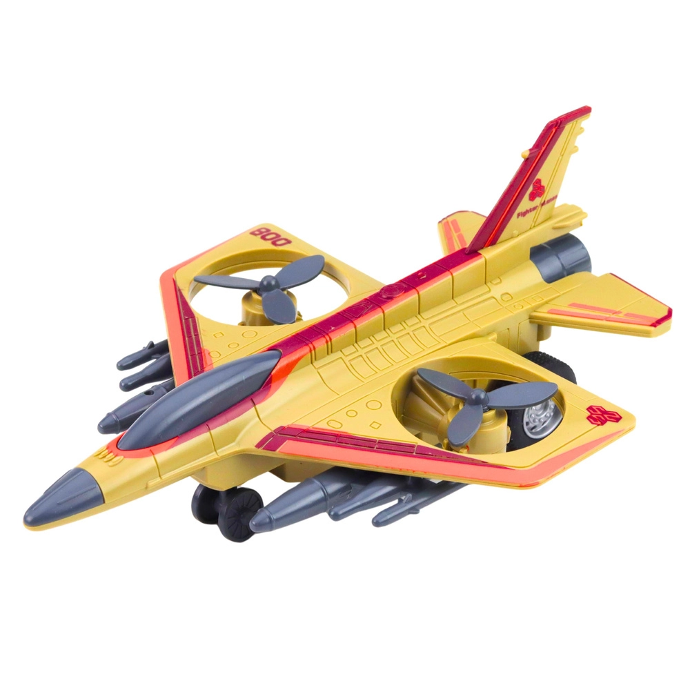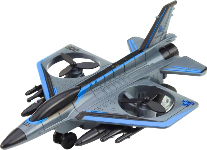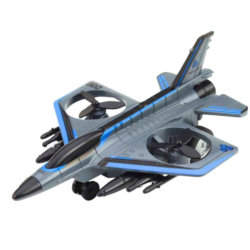 Questo jet militare giocattolo offre ai bambini ore di divertimento. Il design realistico ispirato ai moderni caccia, le eliche rotanti e la spinta a retrocarica stimolano l'immaginazione e la creazione di missioni di volo personali.