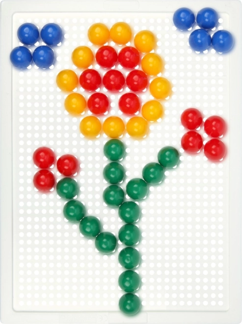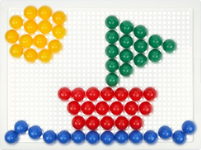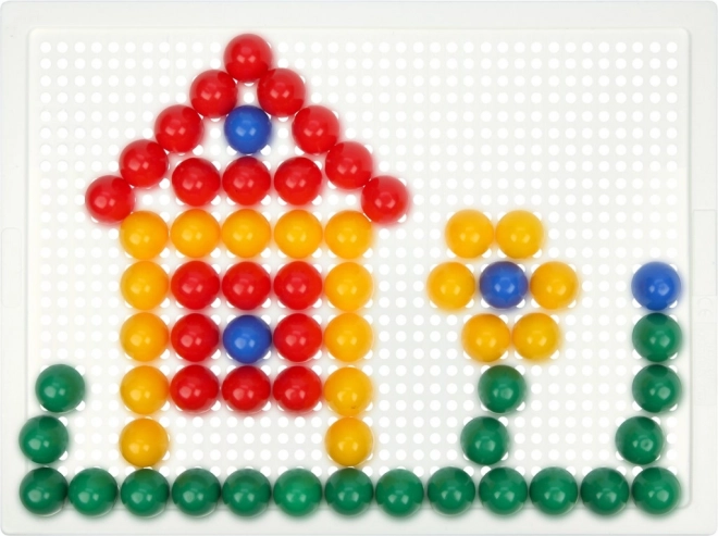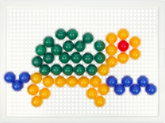 Il classico mosaico a cappellini LENA offre infinite possibilità di composizione. I bambini possono creare motivi semplici o elaborati con i piolini colorati, allenando concentrazione, coordinazione occhio–mano e percezione dei colori.