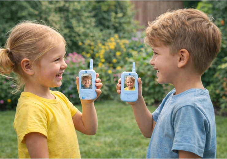 La struttura leggera e compatta si adatta bene alla mano dei bambini; la costruzione robusta è ideale per giardino, parco giochi e casa. La ricarica USB‑C è rapida e comoda e, grazie alle cordicelle da collo incluse, i bambini avranno sempre le ricetrasmittenti a portata di mano. Una portata fino a 300 metri in campo aperto favorisce il gioco d’avventura e il contatto tra fratelli.