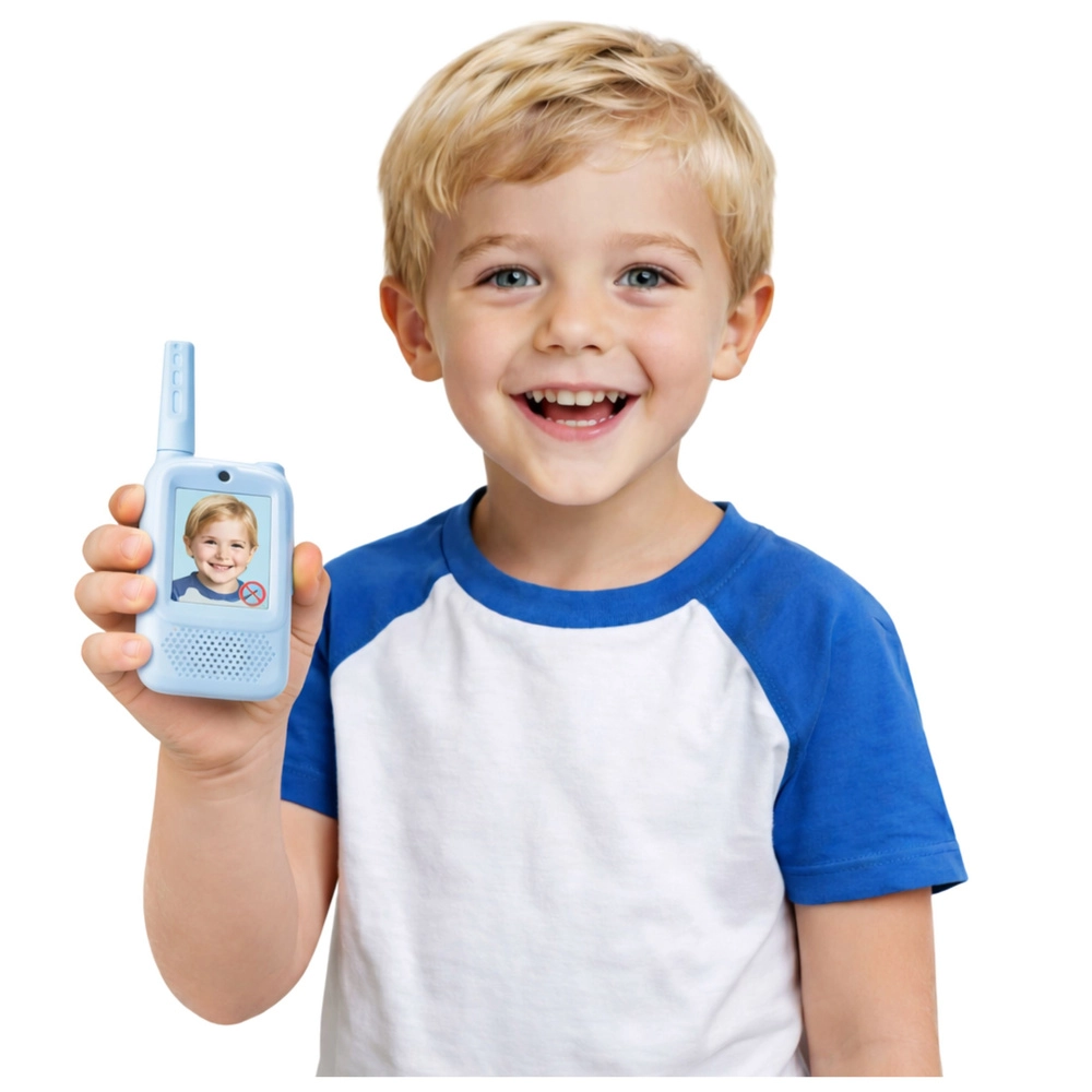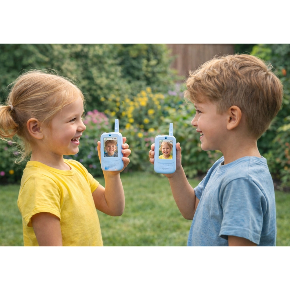 Offrite ai bambini una comunicazione divertente e sicura a casa e all’aperto. Queste ricetrasmittenti blu consentono non solo il classico collegamento premi‑e‑parla (PTT), ma anche videochiamate sul display integrato, scatto di foto e registrazione di video. Il menu semplice con selezione della lingua facilita l’uso anche ai più piccoli.