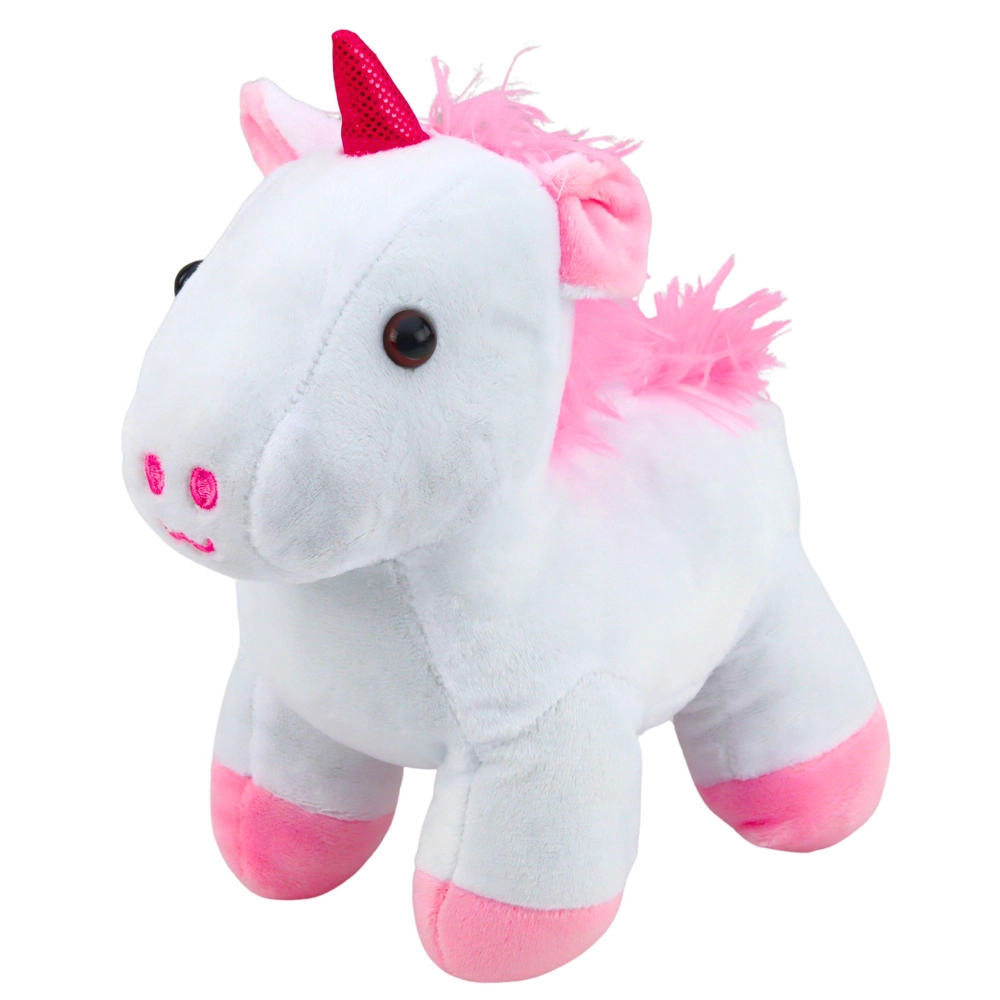 Il peluche morbido e piacevole al tatto offre comfort ai bambini durante il gioco e il riposo. L’unicorno bianco con dettagli rosa è il compagno ideale per la nanna.