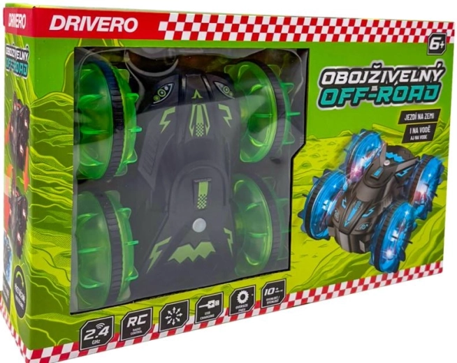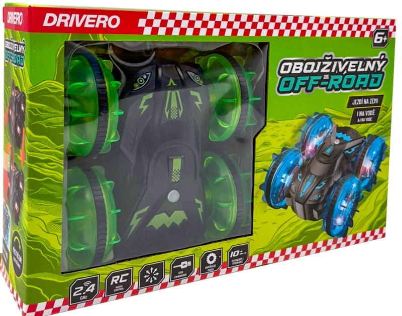 L’RC offroad anfibio Drivero unisce resistenza, velocità e libertà di movimento su diverse superfici. Grazie alla struttura sigillata affronta la guida su terra e in acqua, mentre le ruote trasparenti con LED creano un suggestivo effetto luminoso. Il controllo su frequenza 2,4 GHz garantisce portata stabile e guida senza interferenze reciproche.