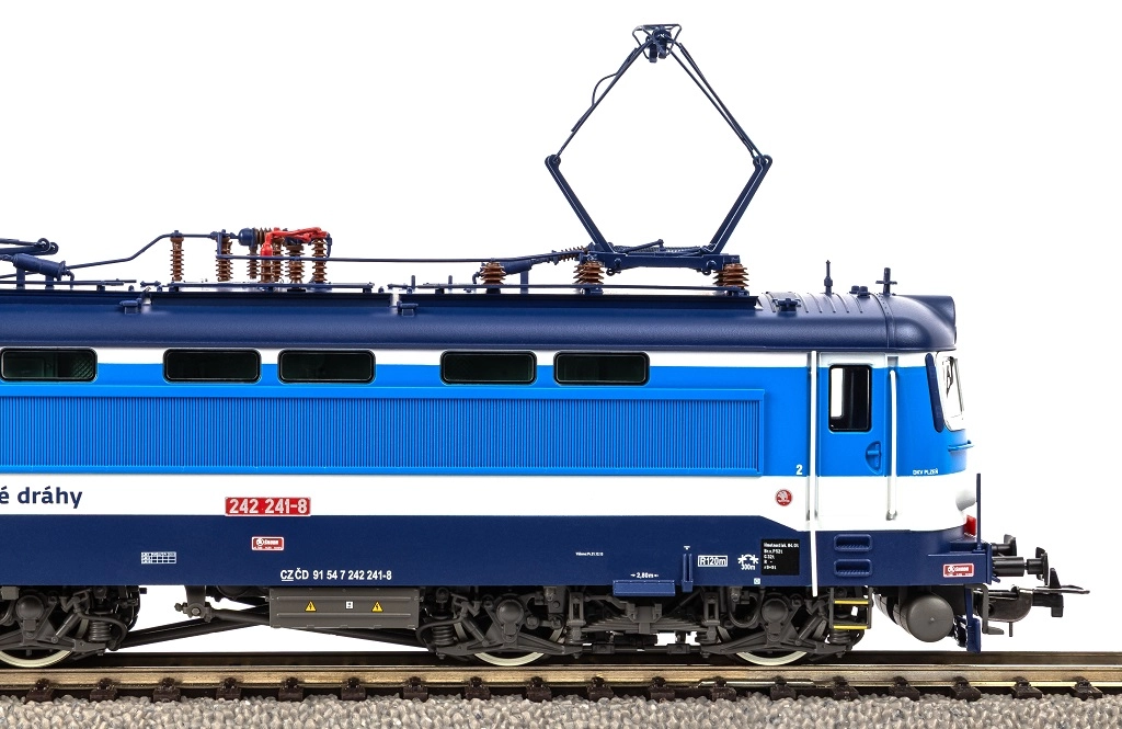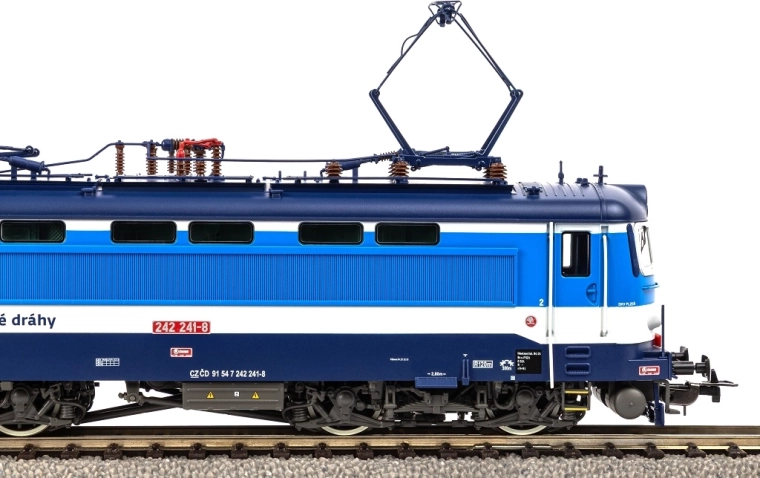 La locomotiva elettrica ČD serie 242 dell’epoca VI, soprannominata “Plecháč”, porta nel mondo del modellismo una riproduzione fedele dell’iconica macchina impiegata sia nel traffico passeggeri che nel leggero traffico merci. Il modello Piko colpisce per i dettagli prototipici dei carrelli, dell’equipaggiamento sul tetto e delle cabine, perfettamente completati da una verniciatura e tampografie di alta qualità.