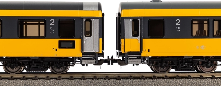 Grazie agli agganci standardizzati (codolo NEM + cinematismo a timone di Allach/aggancio a cassetta chiusa) integrerai facilmente le carrozze nei convogli esistenti. L’alimentazione DC e la compatibilità con il raggio minimo R358 mm garantiscono un funzionamento affidabile sul binario comune. L’illuminazione interna può essere installata successivamente, esaltando l’aspetto realistico sia in marcia sia in sosta in stazione.