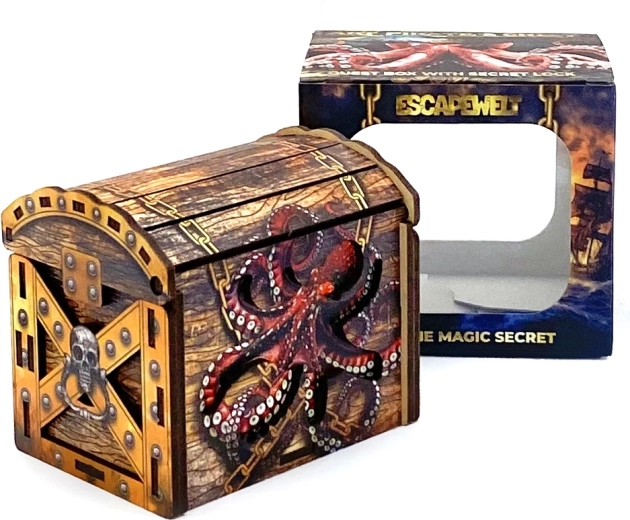 Scopri la tensione e la gioia della soluzione con il rompicapo in legno Forziere dei Pirati di EscapeWelt. Risolvi passo dopo passo enigmi logici e meccanici, sblocca codici e simboli e accedi alla tasca nascosta. Ideale come confezione regalo originale per contanti, gioielli o voucher – senza batterie, solo pura logica e design intelligente.