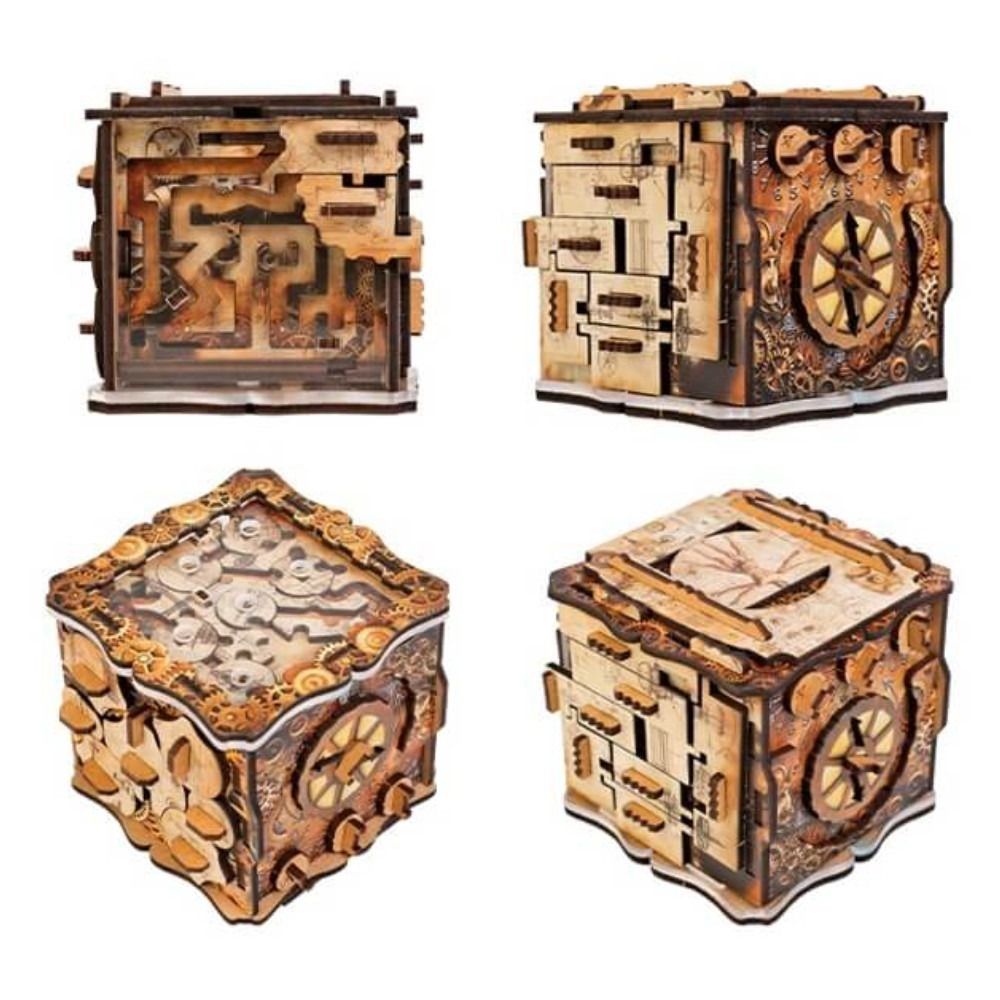 iQube Light è un’originale scatola rompicapo che combina meccanismi ingegnosi, elementi scorrevoli e serrature segrete in un’esperienza immersiva. Per aprirla non servono batterie né forza bruta – solo pazienza, logica e dita agili. Grazie all’elegante look steampunk/tecnico è anche una decorazione d’interni di stile.