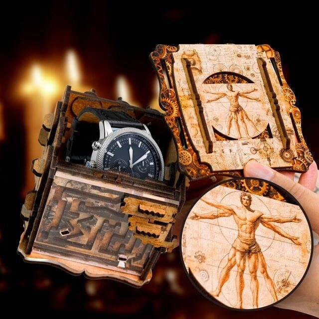Avvincente sfida da escape room in un cubo di legno