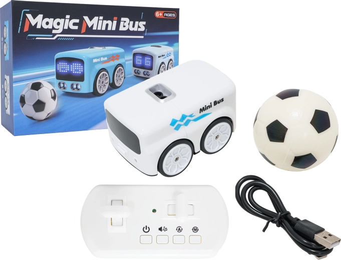 Scopri il mini autobus RC intelligente, che sa fare molto di più che andare avanti e indietro. Grazie ai sensori riconosce gli ostacoli e li evita autonomamente, sa seguire il movimento della mano e la pallina inclusa, e conquista con animazioni LED di espressioni simpatiche e cuori. Il controllo è semplice – tramite comodo telecomando oppure con gesti.