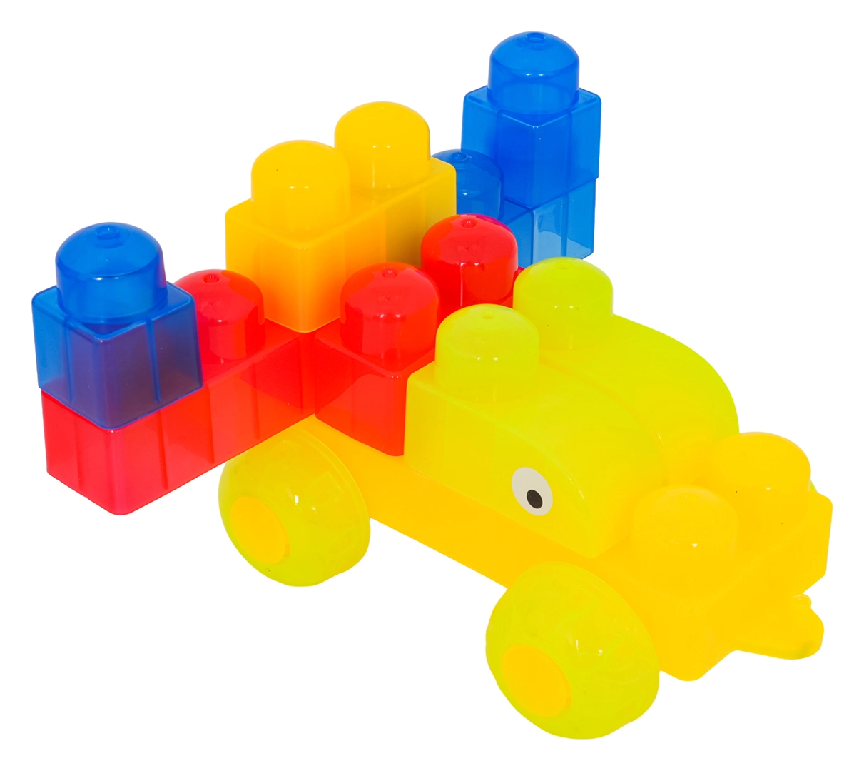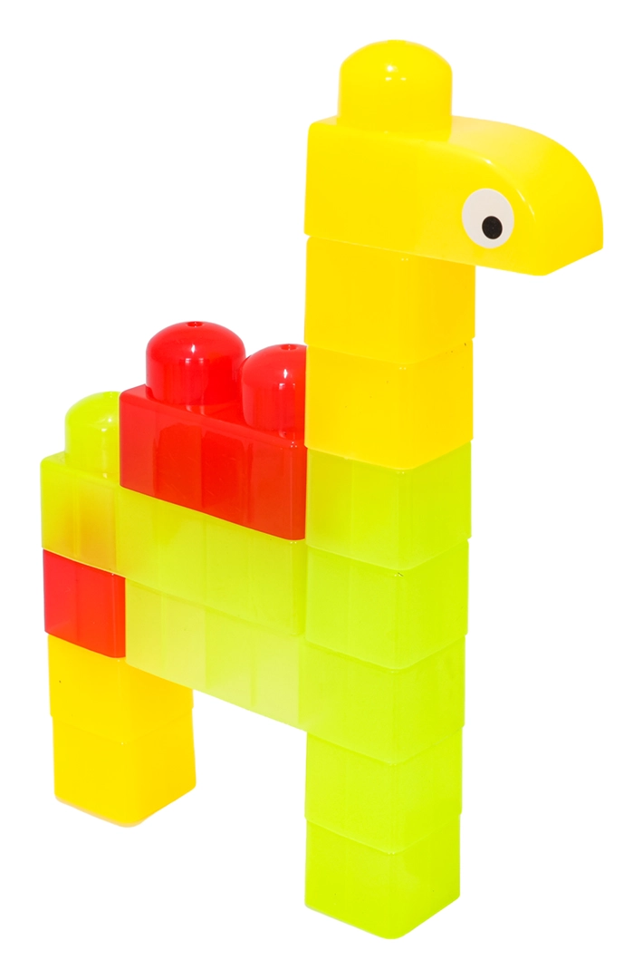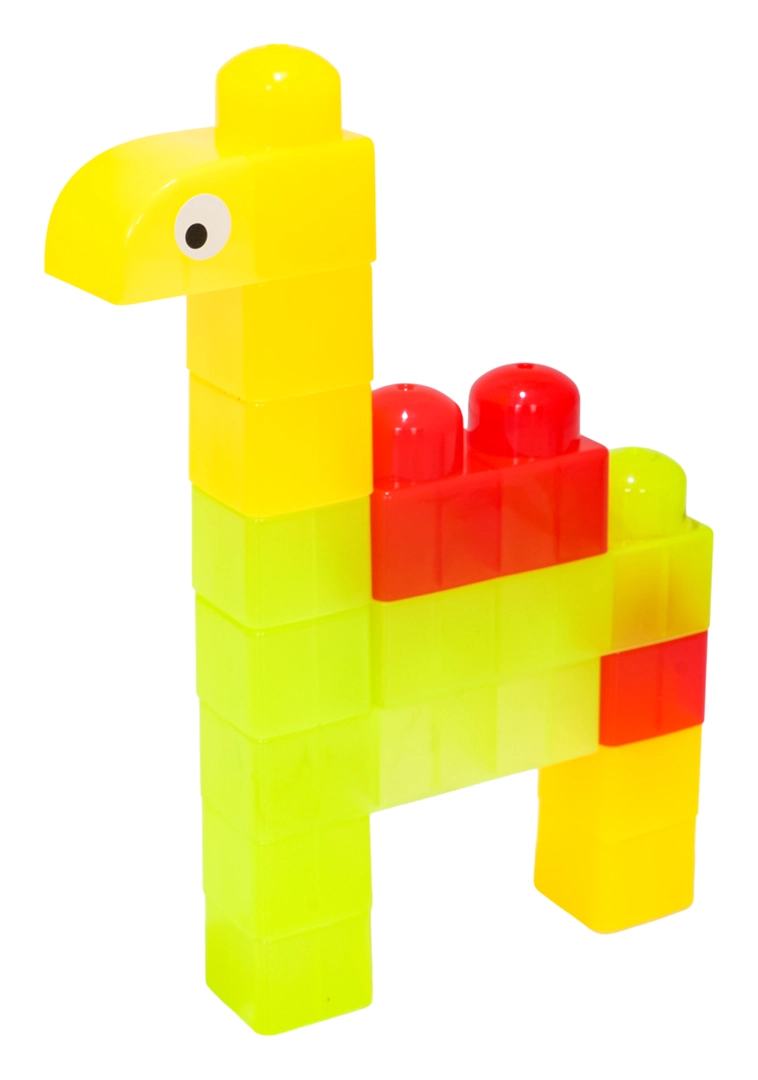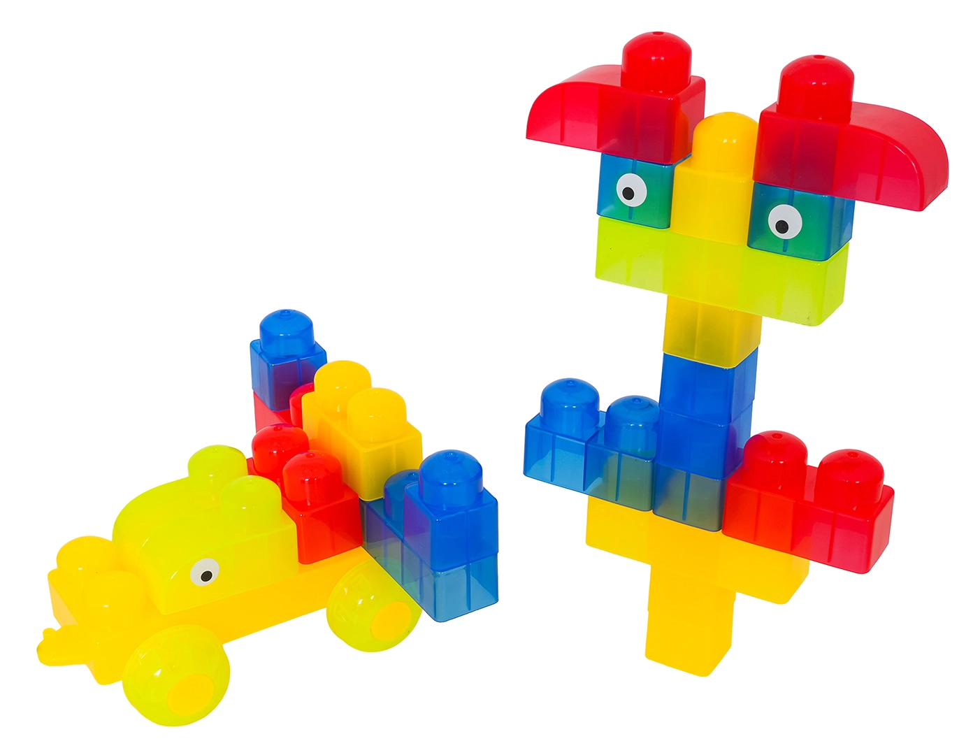 I grandi mattoncini, facili da afferrare, sviluppano la coordinazione occhio–mano e la fantasia durante il gioco libero o seguendo le istruzioni illustrate.